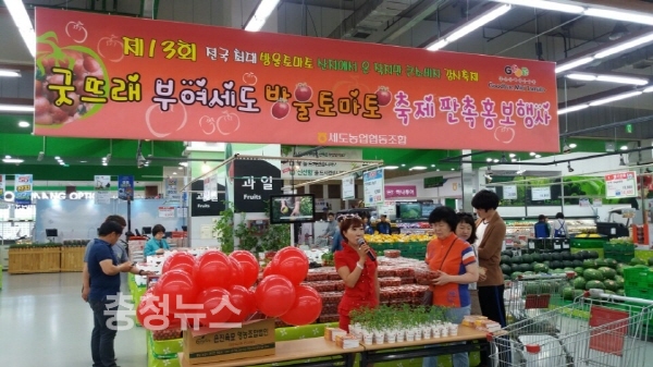 충남 부여군(군수 이용우)은 4일 서울시 서초구에 위치한 농협유통 양재물류센터에서 농협직원, 조공법인 및 공선회원이 참여하여 대대적인 굿뜨래 방울토마토 판촉행사를 개최했다.