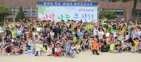 초록우산어린이재단 대전지역본부(본부장 박미애)는 지난 5일 어린이날을 맞아 서구 둔산동에 위치한 둔산초등학교에서 아동 180명, 후원자 200명, 자원봉사자 100명이 참석한 가운데 대전광역시가 주최하고 초록우산어린이재단 대전지역본부가 주관하는 ‘사랑 나눔 큰 잔치’를 진행했다.