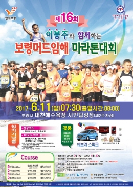 특히, 지난해에는 시민탑 광장에서 흑포 삼거리를 거쳐 무창포해수욕장 입구까지 이어지는 코스가 마라톤 풀코스로 공인 인증을 받았고, 이에 2015년 3300명 보다 무려 30% 이상 증가한 4358명이 참가했으며, 올해도 더욱 많은 선수들이 참가할 것으로 기대를 모으고 있는 가운데, 지난해에 이어 전 국가대표 마라토너 이봉주 씨도 함께 해 대회의 품격을 한껏 높인다는 방침이다.