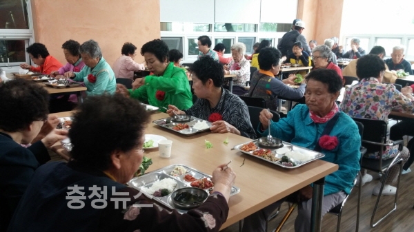 카네이션 달아드리는 행사 후에는 문화활력소에서 준비한 풍성한 음식들로 어르신들의 점심식사를 대접하여 어버이날을 맞는 어르신들에게 큰 기쁨을 주었다.
