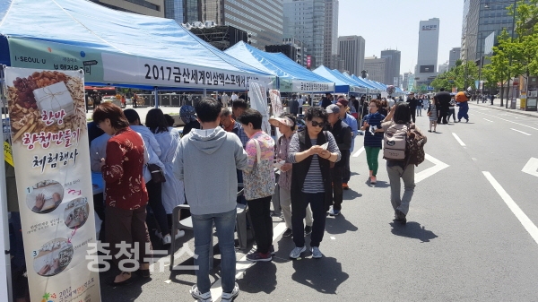 금산세계인삼엑스포 조직위원회(위원장 이동필)는 지난 7일 서울 세종대로 광화문 삼거리 ~ 세종대로 사거리 550m 구간 보행전용거리에서 인삼엑스포 개최사실을 널리 알렸다.