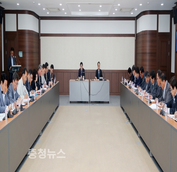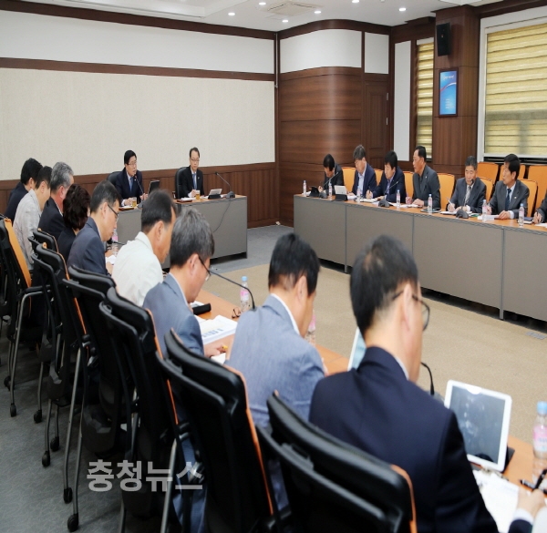 8일 군청 중회의실서 관련 부서장 및 읍·면장 등이 참석한 가운데 한상기 군수 주재로 긴급 가뭄대책회의