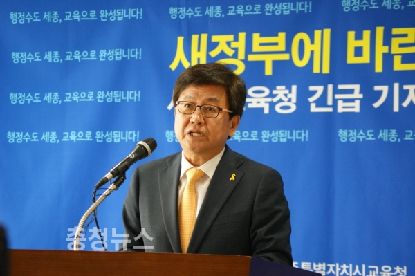최교진 세종특별자치시교육감은 12일 논평을 통해 "문재인 대통령의 국정 역사교과서 폐지를 환영한다"고 밝혔다.
