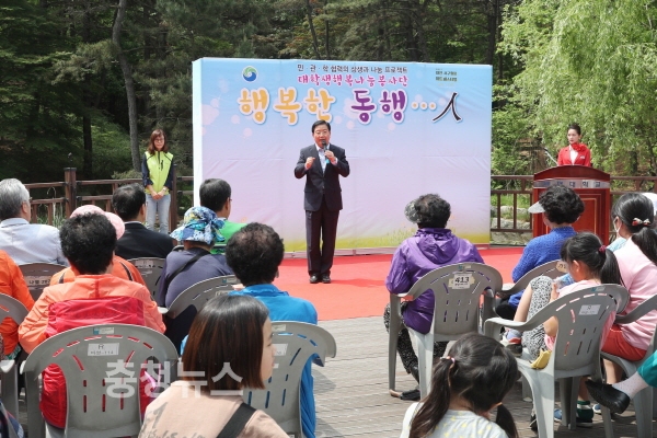 지역 내 4개 대학교 학생들로 구성된 봉사단원들은 ▲녹색나눔 숲 힐링 체험 ▲항공 승무원 체험 프로그램(배재대학교) ▲ 시력보호 검안 프로그램(건양대학 교) ▲네일아트․타투 체험 프로그램(대전과학기술대학교) ▲ 어르신 스포츠 마 사지 프로그램(목원대학교) 등 학과 특성을 살린 맞춤형 봉사활동을 선보였다.