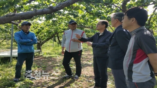 지난 13일 강풍과 우박으로 큰 피해 입은 예산지역 과수 농가 현장점검