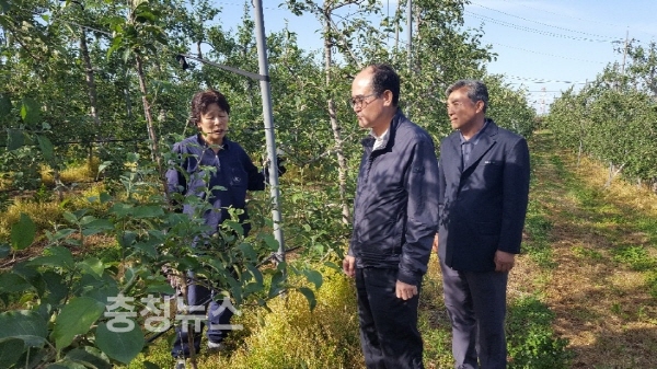 유찬형 농협 충남지역본부장은 지난 13일 오후 강풍과 함께 순식간에 내린 우박으로 인해 큰 피해를 입은 예산지역 과수(사과, 배)피해 농가을 14일과 15일 연이어 찾아 피해상황을 점검하고 피해농가를 위로했다.