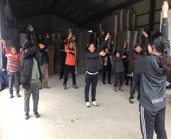 깻잎농가 건강체조는 장소나 시간에 구애받지 않고 일터에서도 작업 전․후건강생활을 실천할 수 있도록 하기 위해 지난해부터 추부면 신평리, 장대리 등을 대상으로 시작됐다.