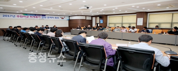 충남 태안군(군수 한상기)이 지난 16일 군청 중회의실에서 군 관계자를 비롯해 주한미군, 서산경찰서, 태안해양경비안전서, 국립공원태안군사무소 관계자 등 30여 명이 참석한 가운데 주한미군 하계휴가 관계자 회의를 개최했다.