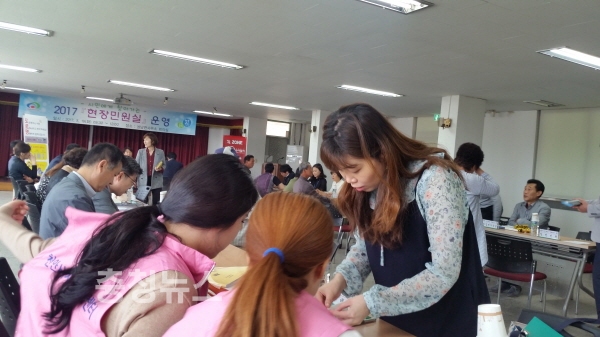 이날 민원실에는 성남면 150여명의 주민이 참여한 가운데 25명의 시청 공무원들이 총 106건의 민원을 상담하면서 지역 주민들의 뜨거운 관심과 참여가 돋보였다.