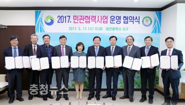 구는 17일 구청 다목적실에서 대전복지재단 등 9개 기관이 참여한 가운데 민관협력사업 운영협약을 체결했다.