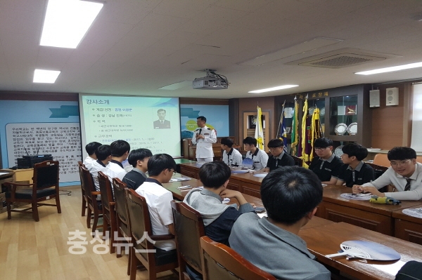이날 교육은 공주함장 이광문 중령이 대한민국의 성장과 발전과정, 6·25전쟁, 제1,2차 연평해전과 천안함 피격사건, 북한의 실체와 도발사례 등을 주제로 학생들의 눈높이에 맞춰 진행됐다.
