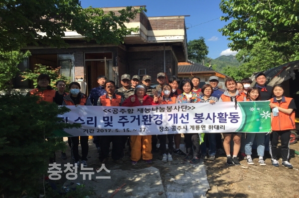 해군은 기술군으로서의 함정 운용을 통해 축적한 다양한 기술을 활용해 전기 시설물 정비, 보일러 수리, 옥상방수 및 도배 등의 재능기부를 했으며, 계룡면 직원을 비롯한 계룡면재능기부단과 공주시자원봉사센터, 공주교대자원봉사단에서도 힘을 보태 폐기물과 쓰레기 10여톤을 치우고 주택과 주변을 말끔히 정비했다.