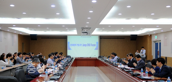 충남대가 18일 오전 11시 30분 대학본부 별관 강당에서 오덕성 총장을 비롯한 70여명의 교직원들이 참석한 가운데 미래 사회를 대비하기 위한 노력으로 진행되고 있는 제10회 Jump CNU FORUM을 개최했다.