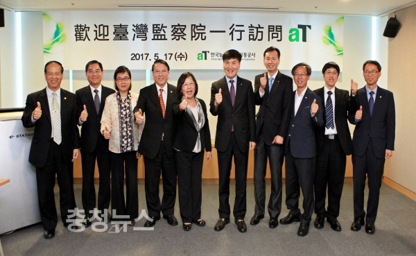 한국농수산식품유통공사(사장 여인홍)는 지난 17일 서울 양재동 aT센터에서, 대만의 농업발전을 위하여 한국 농수산식품 산업 발전현황을 청취하고 aT 사업을 벤치마킹하고자 한국을 찾은 대만 감찰원 일행을 맞이하였다고 밝혔다.