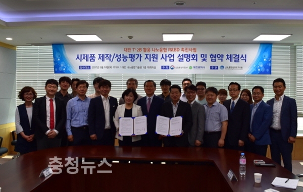 협약식에는 김정홍 대전시 산업정책과장, 한상록 나노연구조합 전무, 참여기업 대표 등 30여 명이 참석했다.