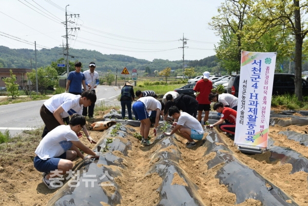 공동체비전고등학교 학생4-H회원 50여 명과 서천군영농4-H임원진이 함께 참여한 가운데 실시된 이날 과제활동은, 직접적인 경험을 통해 농업ㆍ농촌의 소중함을 깨닫고 땀의 가치를 느낄 수 있는 영농활동 체험으로 이뤄졌다.