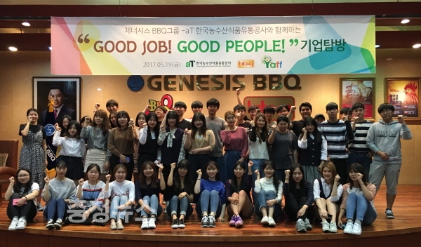 농림축산식품부(장관 김재수)와 한국농수산식품유통공사(aT, 사장 여인홍)는 19일, 새로운 정부의 핵심 정책인 청년일자리 지원사업의 일환으로 국내 대표 식품·외식기업 중 하나인 제너시스 BBQ 그룹에 대한 기업탐방과 채용설명회를 진행했다.