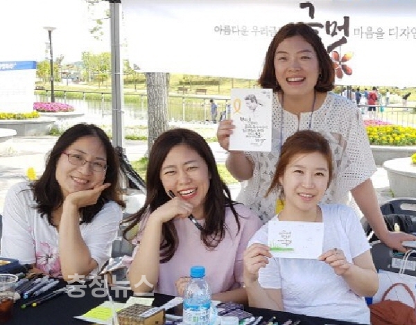 글의 멋을 아는 캘리그라피 작가모임 ‘글멋’은 이날 추모제 행사에서 시민들의 마음을 담기위해 캘리그라퍼들의 정성이 깃들인 붓길은 쉴틈이 없었다.