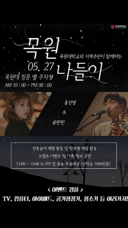 목원대 총학생회에서 준비한 이번 행사는 오전10시부터 밤8시까지 진행되며, 대전지역의 학부모와 유치원생, 초등학생, 중학생을 초청해 각종 체험행사는 물론, 유명가수 공연도 펼쳐진다.