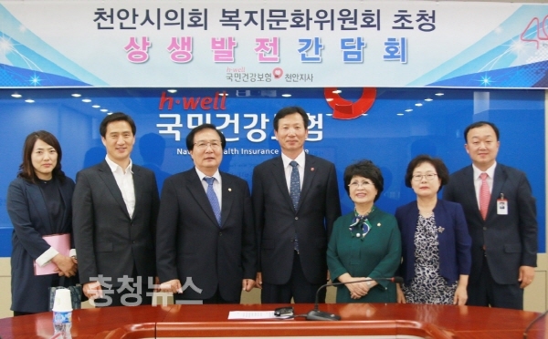 천안시의회(의장 전종한) 복지문화위원회 의원들은 지난 22일 국민건강보험공단 천안지사(지사장 오명규)를 방문하여 간담회를 실시 했다.