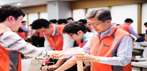 이날 진행된 봉사활동에는 한국타이어 대표이사 서승화 부회장과 본사 임직원 120명이 참석한 가운데 아동형 좌식책상 및 책꽂이형 공간 박스 등의 가구를 직접 제작하는 시간을 가졌다.