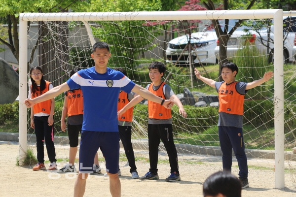 이 날 행사에는 아산무궁화의 정성민, 박형순, 박주원, 황도연이 일일 축구 교사로 나서 풍기초 어린이들에게 축구의 재미를 전달했다.