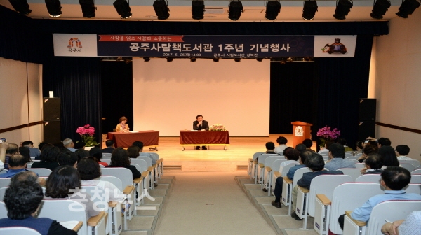 충남 공주시(시장 오시덕)가 재능기부 활성화와 유용한 지식정보를 함께 나누는 공주사람책도서관 개관 1주년 기념행사를 지난 25일 시립도서관 강북관에서 개최했다고 밝혔다.