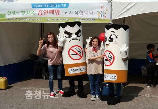 충남도교육청은 29일부터 6월 2일까지를 금연주간으로 정하고, 각 급 학교 및 교육지원청에서 흡연예방 및 금연 캠페인 활동을 전개 중이며, 6월에는 담당교사 대상 연수를 추진할 계획이다.