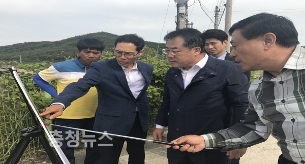농어촌공사 정승 사장이 전남 진도 수장저수지를 방문해 가뭄현황을 점검하고 있다-min