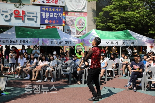 또 다양한 체험부스(꽃으로 전하는 메시지, 나만의 화분 만들기, 프리마켓 등)를 운영하고 웃음폭탄 저글링&서커스, 청소년 동아리 공연 등 청소년을 위한 다채로운 행사도 진행됐다.