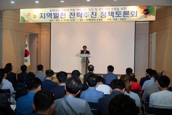충남 서천군(노박래 군수)은 지난 30일 문예의 전당에서 전문가와 지역대표 및 주민 100여 명이 참석한 가운데 ‘동백대교 개통 대응 지역발전 전략추진 정책토론회’를 개최했다.