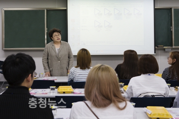 . 특강에 참가한 학생들을 격려하는 상명대 김종희 행정대외 부총장