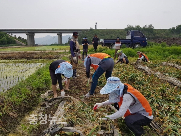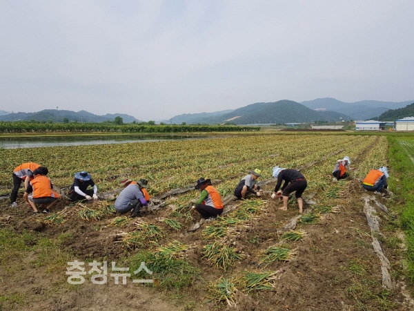 농협중앙회 충남지역본부(본부장 유찬형) 임직원은 31일 세종공주원예농협(조합장 박승문)‘마늘’공선출하회를 찾아 마늘 수확 일손 돕기를 펼쳤다.