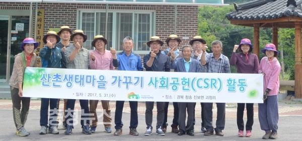 산림청 한국산림복지진흥원(원장 윤영균)은 소속기관인 국립칠곡숲체원(원장 조두연)이 31일 경북 청송군 진보면 괴정리 소재 꽃돌산촌생태마을을 방문, 마을 가꾸기 행사를 벌였다고 밝혔다.