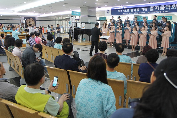 을지대학교병원(원장 홍인표)은 1일 낮 12시 20분 병원 1층 로비에서 대전시립합창단 초청 ‘제 178회 환자를 위한 을지음악회’를 개최했다.