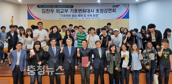 김찬우 기후변화대사는 기후변화의 바로미터라 할 수 있는 북극을 자세히 소개하면서 학생들이 생소하게 느낄 수 있는 기후변화체제에 관해 설명하면서, 기후 변화에 따른 대체 에너지 투자의 동향과 더불어 에너지 절약의 필요성을 강조했다.
