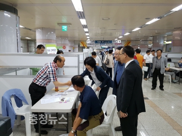 대전지방보훈청(청장 강윤진) 제대군인지원센터는 2일 도시철도 대전시청 역에서 중·장년 제대군인 및 일반인을 대상으로 구인·구직의 날 행사 “찾아가는 취업 장터”을 개최하였다.