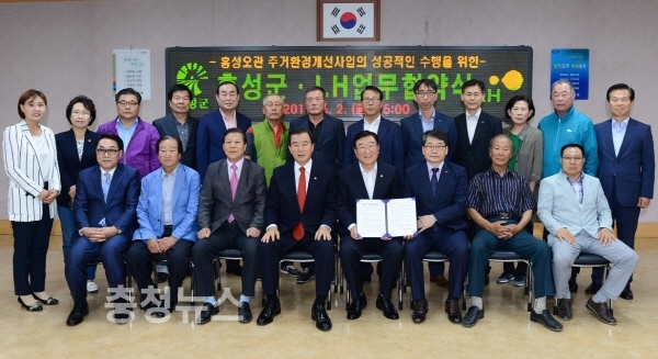 홍성군과 LH가 2일 오관구역 주거환경개선사업 구역내 공동주택건설을 차질없이 추진하기 위한 '업무협약'을 체결 했다.