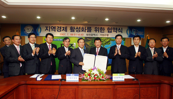 대전시는 오는 18일 오후 2시 40분 박성효 시장과 강권석 은행장이 참석한 가운데 산업단지조성에 필요한 금융지원, 각종 도시정비사업에 참여하는 기업에 대한 자금지원 등을 내용으로하는 상호협약을 체결한다고 밝혔다.
