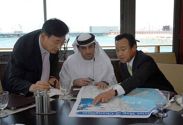 이완구 충남지사는 지난 15일(한국 시간) 아랍에미리트 아부다비에서 IPIC(International Petroleum Investment Company, 아랍에미리트 국영의 정유 및 석유화학분야 투자전문기업)의 사장인 카뎀 알 쿠바이시(Khadem Al Qubaisi)와 22억달러의 투자에 원칙적으로 합의했다.