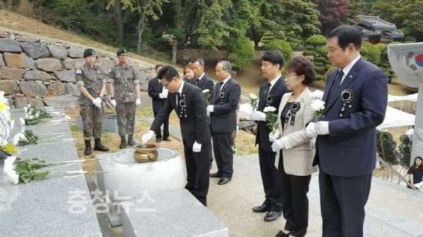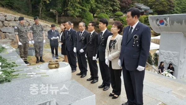 김 의장은 "나라사랑의 고귀한 희생정신으로 한목숨 불태워 호국의 길을 선택하신 이곳에 잠드신 모든분들은 우리의 진정한 영웅"이라고 강조했다.