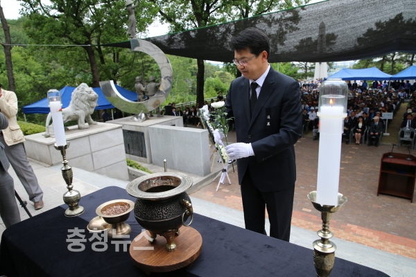 충남 아산시는 지난 6일 10시 남산 안보공원 내 충렬탑에서 제62회 현충일 추념식을 거행했다.