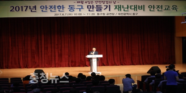 대전 동구(구청장 한현택)는 7일 구청 공연장에서 지역자율방재단원과 안전관련 단체, 주민 등 총 400여 명을 대상으로 재난대비 안전교육을 실시했다.
