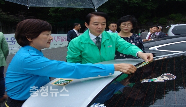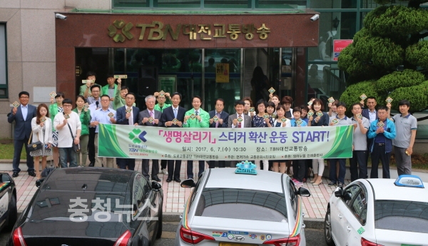 차량에 홍보 스티커 부착으로 TBN대전교통방송의 '생명살리기'운동 확산