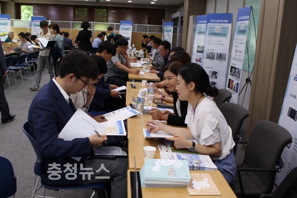이날 행사에는 대전, 충남, 충북 지역의 사회적경제기업 통합지원기관 임원들을 포함하여 총 20개 업체와 직원 50여명이 참여하여 사회적경제기업에 대한 교육과 더불어, 프리젠테이션을 통한 기업 홍보, 직원들과의 1대1 구매상담의 시간을 가졌다.