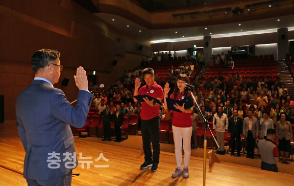 충남 계룡시(시장 최홍묵)는 지난 8일 계룡문화예술의 전당에서 오는 15일부터 18일까지 계룡시에서 개최하는 제69회 충청남도민체육대회의 성공 개최를 위해 자원봉사자 발대식을 가졌다.