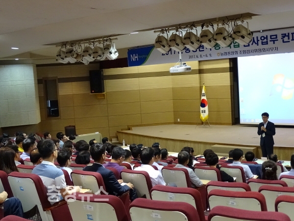 농협중앙회 조합감사위원회(위원장 채원봉)는 세종시 장군면 소재 농협세종교육원에서 지난 8일과 9일 양일간에 걸쳐 충청권역(충남·북,대전)122개 농·축협 상임감사, 감사팀장 등 150여명이 참석한 가운데 '2017 농·축협 감사업무 컨퍼런스'를 개최하였다.