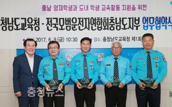 한편, 충남도교육청은 협약식에서 그동안 등하교길에서 교통사고 예방과 교통질서 캠페인에 적극적으로 참여한 4명의 모범운전자에게 감사패가 전달했다.