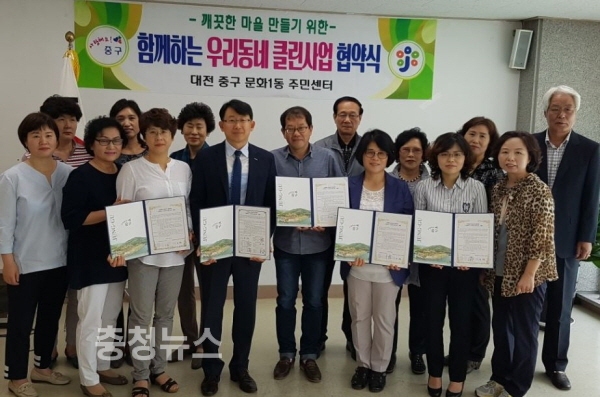 대전 중구 문화1동주민센터(동장 배덕현)는 지난 9일 주민주도형 클린사업 추진을 위해 센트럴파크1단지 등 5개 공동주택 관리소장 및 입주자대표 등이 참여한 가운데 ‘함께하는 우리동네 클린사업’ 협약식을 개최했다.
