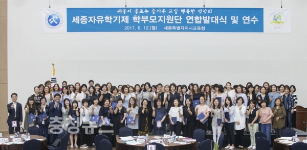 세종시교육청(교육감 최교진)이 12일 정부세종컨벤션센터에서 관내 모든 중학교가 자유학기를 운영하게 될 2학기를 앞두고 관내 22개 중학교, 약 200여 명의 학부모와 교원 등이 참석한 가운데 2017 자유학기제학부모지원단 연합발대식과 연수를 개최했다.